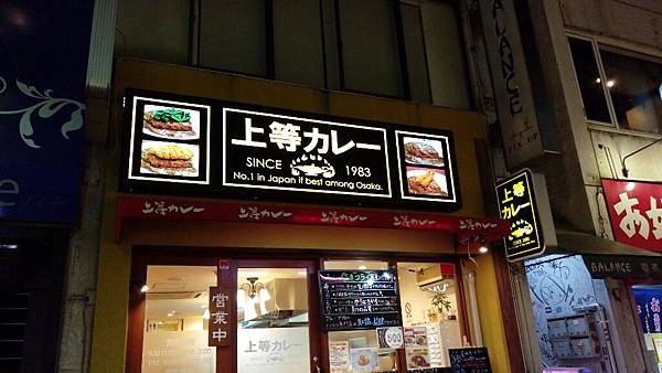 ,因此我為避免地雷,就直接選擇這家飯店,後樂飯店位在出車站的右前方,走桃太郎大通,直走500公尺右轉,十分鐘路程,或是走高島屋旁的小巷子,這條路跟桃太郎大通平行,但不用右轉即可到達更方便。未來如果沒有托著行李,可走地下道,就更快又可以逛。房間大,床是兩張雙人合併,放兩個28吋行李箱剛好,廁所雖然不大,但非常乾淨,令我感覺很舒適,飯店樓下有藥妝店兼便利商店,但東西價格偏高,建議去天滿屋的商店街的藥妝店買,雖然車站前也有兩家,但沒有天滿屋商店街的便宜。飯店前面就是美食街,車站前的商店街也有美食街,地下街也很好逛,車站旁約五分鐘路程有AEON MALL~超大,超市熟食區東西非常豐富。第一天我們放完行李就急忙出門覓食,因為想說日本人都很早打烊,後來我發現美食街(撇除百貨公司)都比較晚關門,大多是居酒屋,但也有不是居酒屋的,大概是為了因應不想喝上班族吧,不過位子都小小窄窄,實在很不適合帶小孩的家庭😖,我選了一間位子稍大的咖哩店,[一上等]