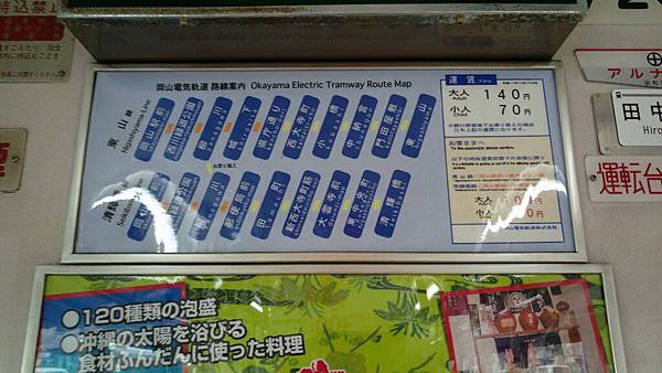 上車後,電車經過了我們住的飯店(前面的桃太郎大通)後,沒想到過了兩站,岡山後樂園跟岡山城已到,天啊~真的超近,西川綠道→城下(XD....),所以根本不用跑到前面總站搭車🤣