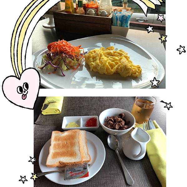 這兩天餐點算是小而美的套餐,通常前一天櫃台會給你先填寫隔天早上你想吃什麼的點餐卷,沒填到沒關係,當天早餐服務員也會給你填寫點餐。照片上只有西式,其實還有泰式現做麵飯,只是這天我沒選。