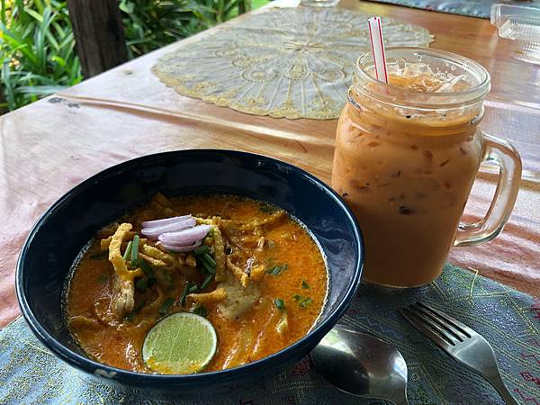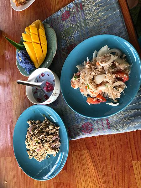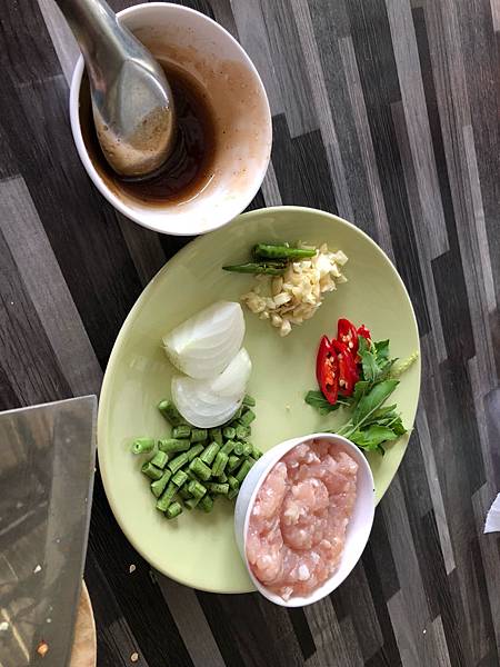 在正式上課時,是一位男老師,不過我覺得他只是一個會做菜的師傅(員工),是不是老師級的廚師,因為我沒問,所以無解,哈哈😄。本人跟妹妹從小就跟泰國很有緣分,關於泰國菜我們很有底子,會來上課主要想要更了解跟自己在台灣生活中的做法有什麼不同,我除了發現食材不一樣,在台灣都是用相似的植物替代,難怪味道吃起來沒那麼香之外,其實廚藝學校課程,都是為了因應觀光客能在短時間學會,很多都已濃縮成重點式的制式化教學,學員能馬上上手的料理方式和步驟,有些步驟很偷(ㄙㄨㄟˊ)吃(ㄅ一ㄢ、)步。😁